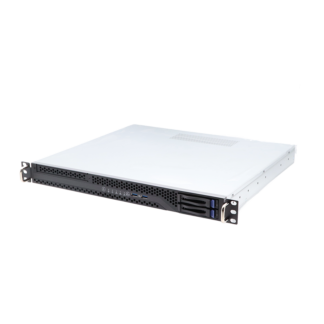 Station industrielle rackable avec double sortie vidéo, double réseau et emplacement pour lecteur optique.