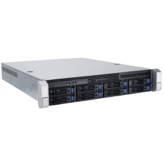 Station industrielle rackable avec double sortie vidéo, double réseau et emplacement pour lecteur optique.